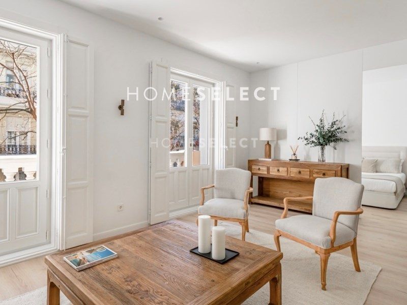 Home Select vende piso recién reformado, amueblado y completamente a estrenar en el Barrio de Salamanca - Recoletos. En la prestigiosa milla de Oro de Madrid, junto a las tiendas más exclusivas, los restaurantes de moda y museos. Muy bien comunicado y a unos minutos caminando del parque de El Retiro. Se encuentra situado en un edificio clásico de 1900 con una fachada clásica, portal muy bonito y portero físico que proporciona una mayor seguridad y comodidad.
