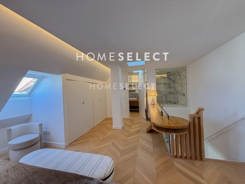 Home Select vende espectacular ático en plena calle Nuñez de Balboa en la zona de Recoletos. Se encuentra situado en una finca moderna con portal clásico de 1993, cuenta con portero físico y dos ascensores.