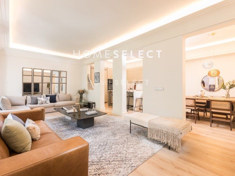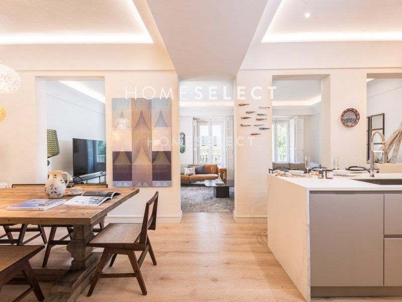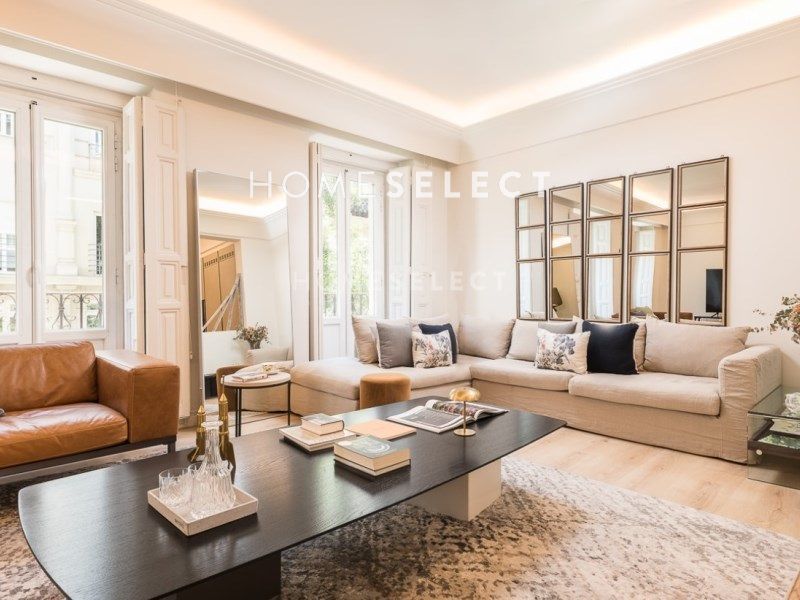 Home Select pone a la venta este exclusivo piso en Almagro, ubicado en un elegante edificio clásico con tres balcones a la calle. Destaca por su luminosidad, potenciada por sus amplios ventanales, que inundan de luz natural cada rincón.