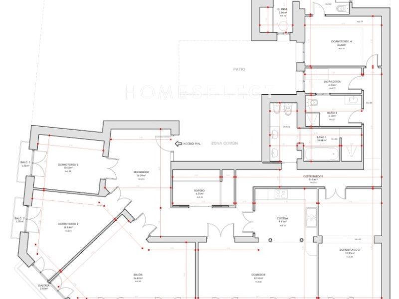 Actualmente, nada más entrar a la vivienda un gran recibidor con un buen ropero nos dirige hacia la zona de día compuesta por una amplia zona de estar con salón y comedor en esquina, con grandes ventanales que aportan luminosidad. En la zona de noche, dormitorios espaciosos, algunos con acceso a un patio interior, asegurando tranquilidad y privacidad.