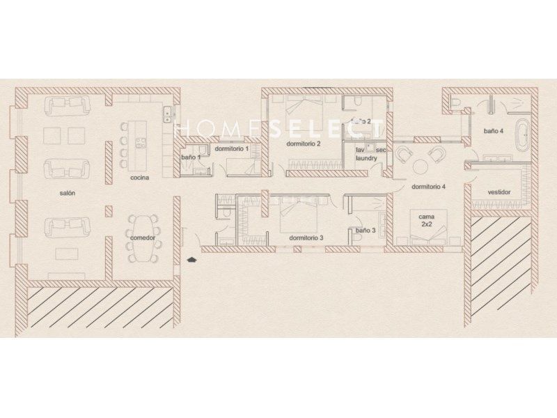 Vivienda exterior con una superficie de 271m2 construidos, según catastro y se distribuye de la siguiente manera: nada más entrar en la vivienda, a mano izquierda nos encontramos con la zona de día compuesta por un salón dividido en dos ambientes, exterior y con tres balcones a la calle con orientación oeste, lo que le permite la entrada de una cálida luz natural de tarde. Conectado con el salón, el comedor y la cocina, equipada con todos los electrodomésticos y con una gran isla central. Aseo de cortesía. En la zona de noche, cuatro dormitorios con baño en suite, siendo el principal el más grande con un gran vestidor.
