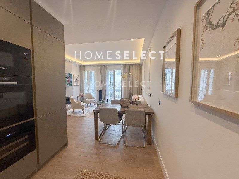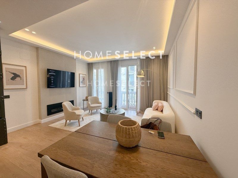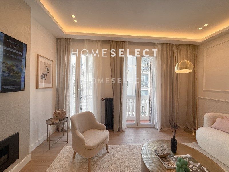 Home Select vende piso recién reformado, amueblado y completamente a estrenar en Barrio de Salamanca-Recoletos en plena calle Castelló. La vivienda se ubica en una tercera planta exterior con dos huecos a la calle en un edificio clásico de 1920 distribuida en 83 metros cuadrados.