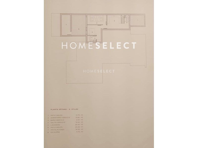 Bajando a la planta sótano, un agradable patio inglés invade de luz el resto de estancias: dormitorio de servicio con vestidor, salita y baño. Además hay un lavadero y un cuarto de instalaciones.