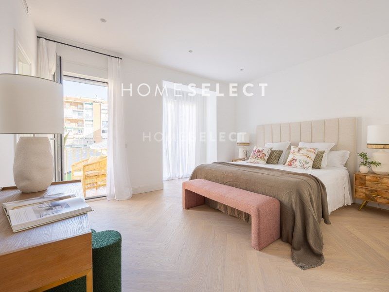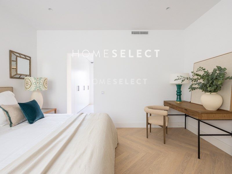 Se trata de una cuarta planta, de seis que tiene en total el edificio, siendo 16 vecinos. Tiene una superficie construida de 323m2, según catastro y destaca por la agradable luz que la orientación sur le proporciona durante todo el día. Se vende completamente reformada, a estrenar, y amueblada. La vivienda tiene domótica y una pequeña terraza en el dormitorio principal.