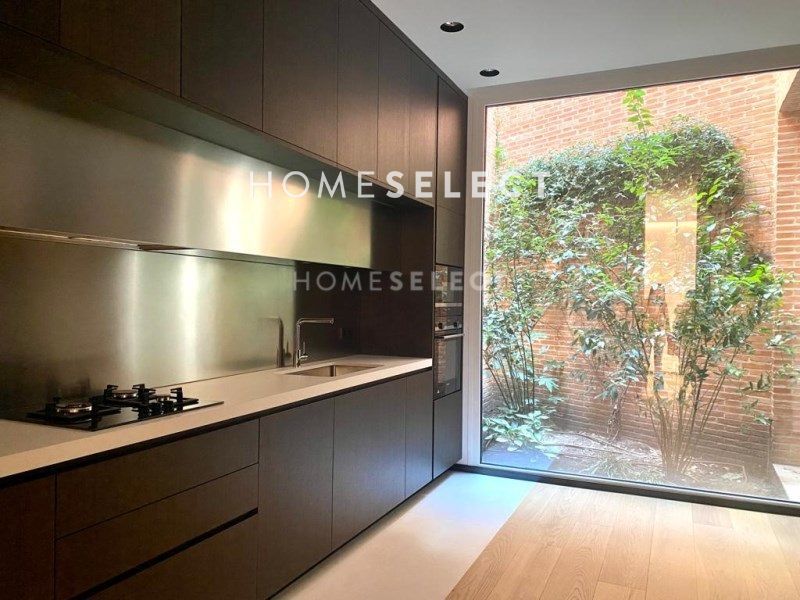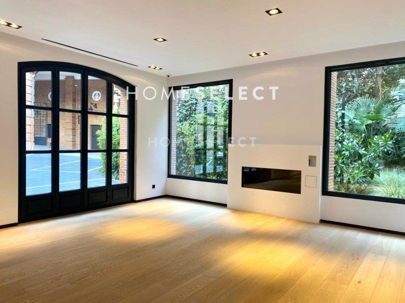 Bonita casa totalmente reformada en finca clásica dentro del Barrio de Salamanca. El estilo con ladrillo visto y ventanas en arco recuerda los edificios de Covent Garden, con reminiscencias de un pasado industrial. Reforma e interiorismo de Belén Domecq.