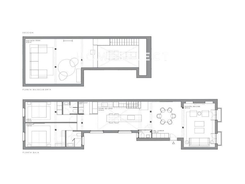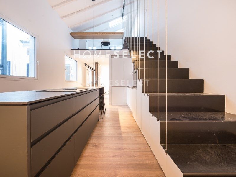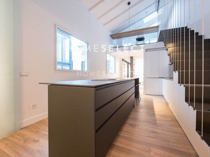 La zona social está compuesta, en su planta baja, por un salón comedor con dos balcones a la calle y una bonita y moderna cocina con isla abierta al mismo, creando un espacio visualmente conectado pero manteniendo separadas las tres estancias. Además cuenta con zona de lavado independiente y aseo de cortesía. Subiendo las escaleras, nos recibe un magnífica zona de descanso abuhardillada y con muchísima luz.