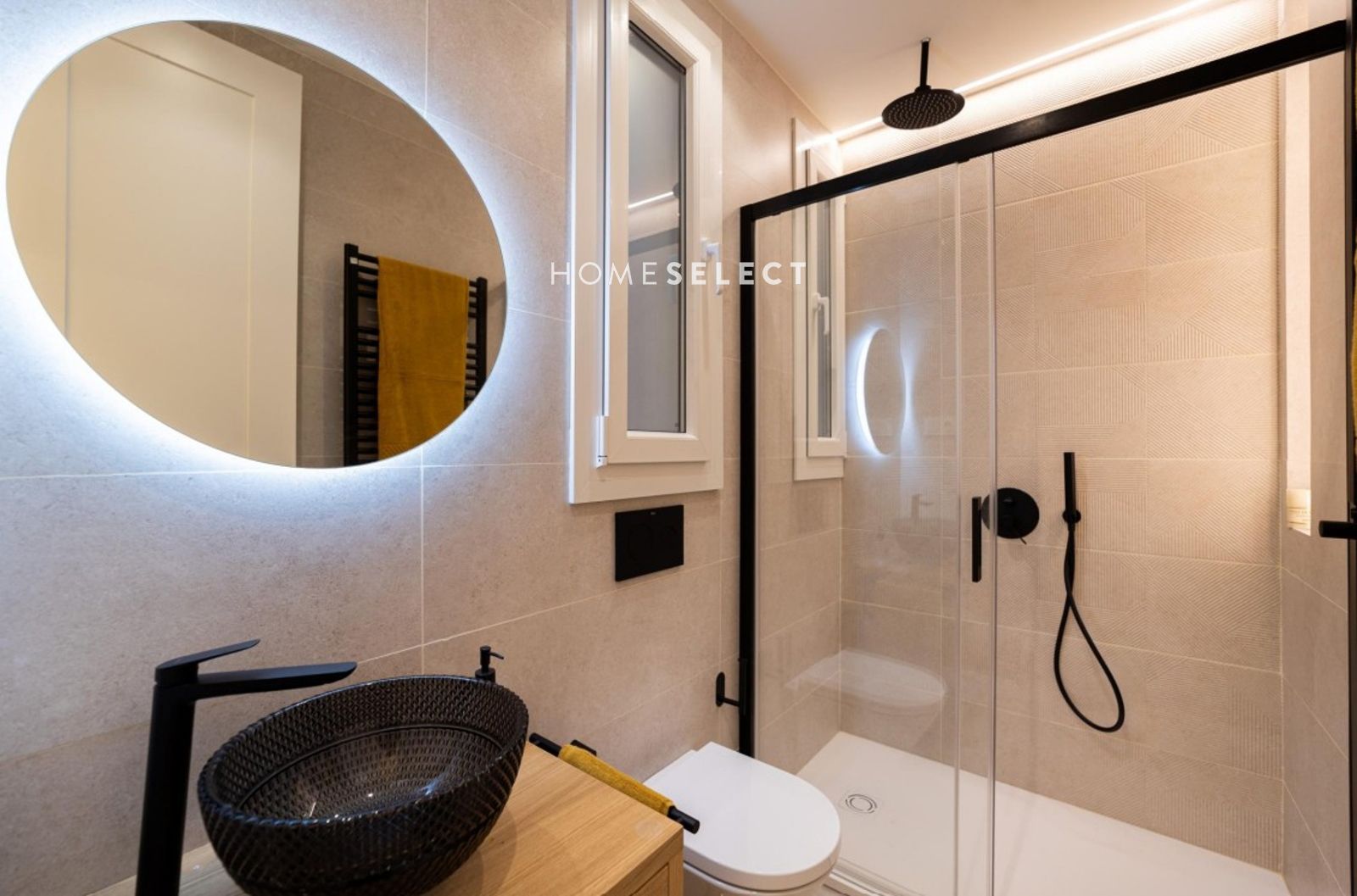 La vivienda ha sido objeto de una reforma integral de alta calidad, con acabados de lujo y se encuentra lista para entrar a vivir. Entre sus prestaciones destacan la calefacción individual por gas natural, aire acondicionado por conductos frío/calor con sistema Airzone, iluminación LED indirecta, solado de madera en lamas de gran formato de PORCELANOSA, sanitarios suspendidos de ROCA y revestimientos cerámicos rectificados de alta gama.