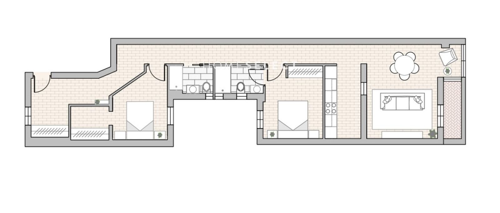La zona de noche se compone de dos dormitorios dobles, ambos con armarios empotrados de suelo a techo. El dormitorio principal dispone de baño en suite, ofreciendo un espacio cómodo y bien resuelto.