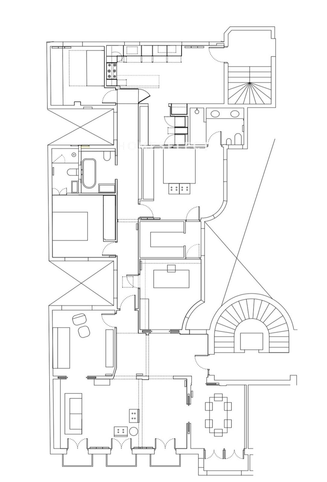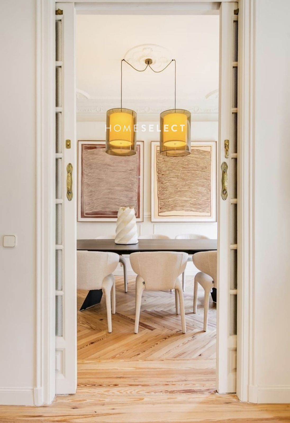 Esta propiedad de 270 m² destaca por su excepcional luminosidad y una reforma integral con interiorismo a estrenar, entregándose totalmente amueblada. La vivienda se ubica en un edificio de fachada clásica del año 1900, exento de IBI, y cuenta con techos de más de 3 metros de altura, tres balcones y un mirador a la calle.