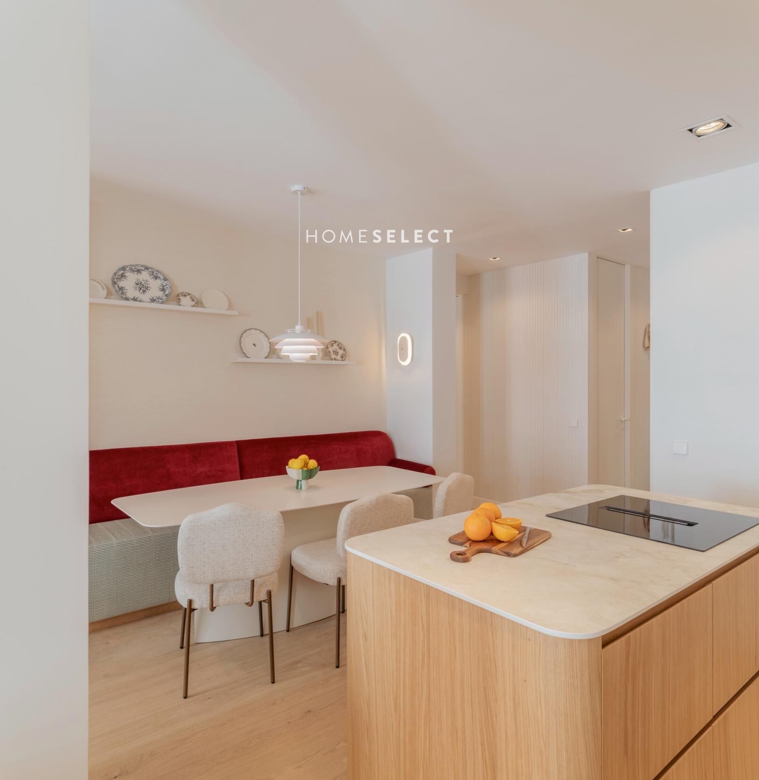 La vivienda se organiza a partir de una zona social amplia y luminosa, donde se integran el salón, el comedor y la cocina en un espacio fluido y equilibrado. La cocina, diseñada a medida, se integra de forma natural en el conjunto, aportando funcionalidad y estética, y se abre al área de estar, creando un ambiente ideal tanto para el día a día como para recibir invitados.